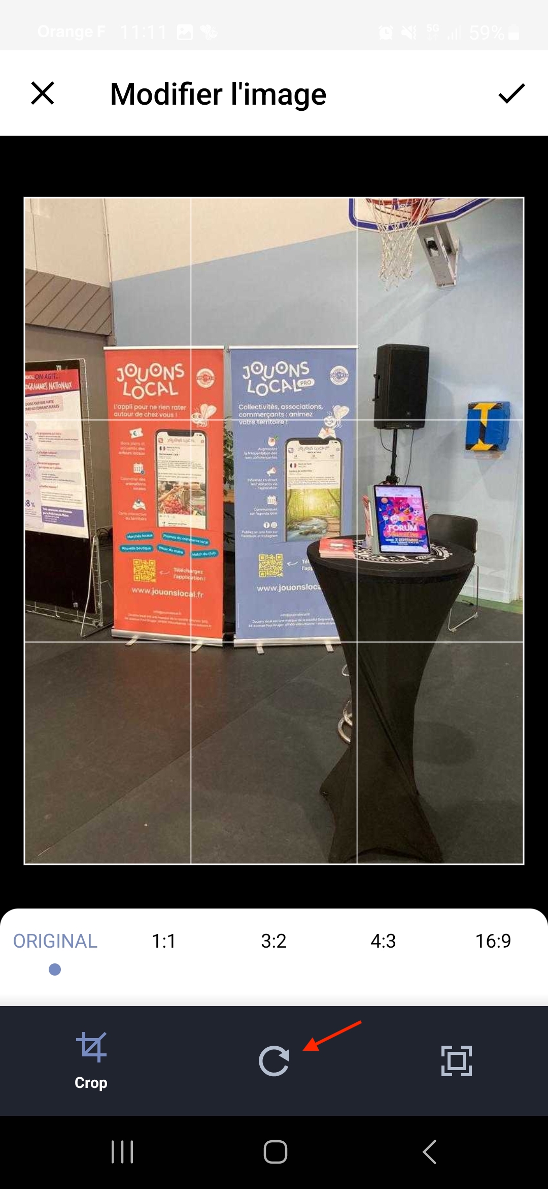Vous souhaitez rogner ou recadrer vos photos, cliquez l’icône de recadrage.