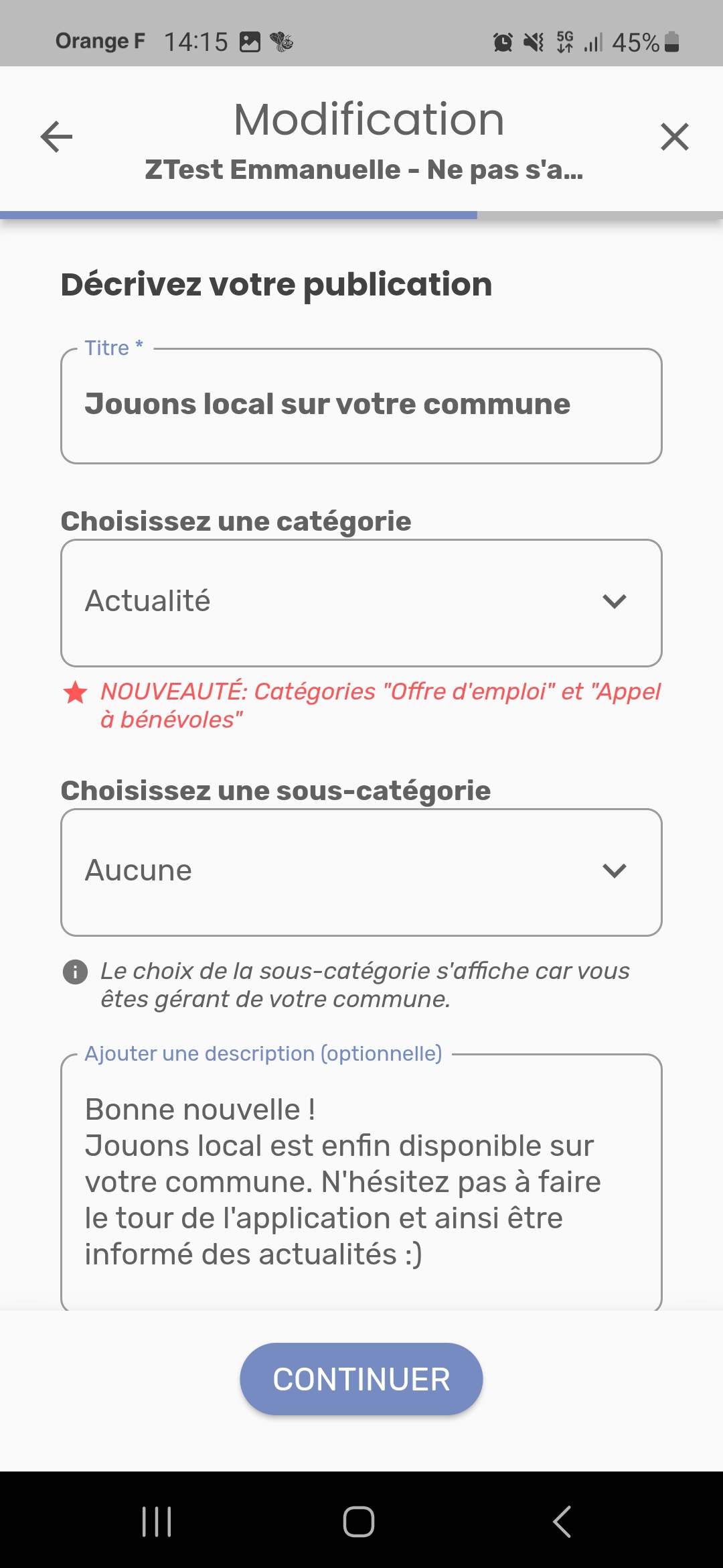 Il vous suffit de changer les informations que vous souhaitez, puis de cliquer sur “CONTINUER”