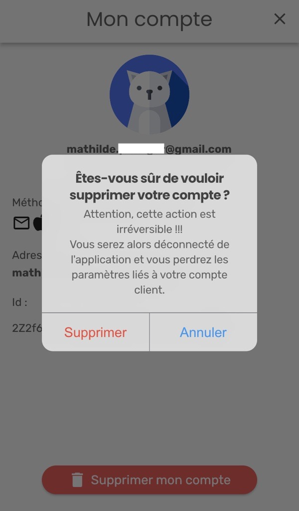 Une fois que vous êtes sur votre compte, cliquez sur “Supprimer mon compte”.